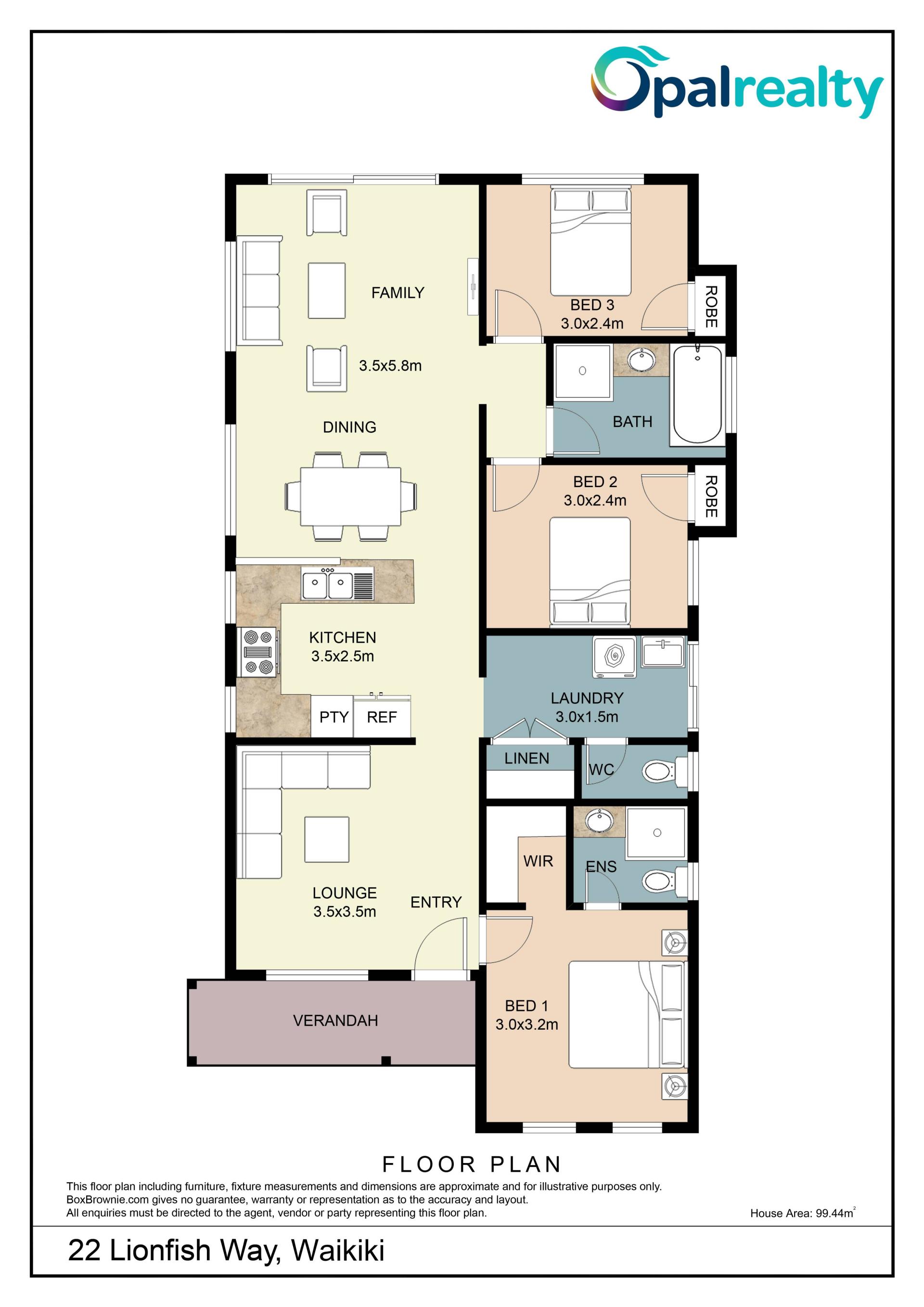 Disclaimer: This property description has been prepared for advertising and marketing purposes only. The information provided is believed to be reliable and accurate. Buyers are encouraged to make their own independent due diligence investigations / enquiries and rely on their own personal judgement regarding the information provided. Virtual furniture has been utilised to show the space and should not be used as a direct comparison of size or layout. Opal Realty provide this information without any express or implied warranty as to its accuracy or currency.